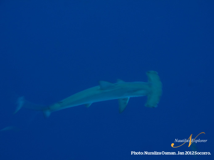 Our first day at the South end of San Benedicto was a good start to our trip. On the first dive we saw mantas, dolphins and hammerhead sharks. Talk about a great beginning. The water temperature was 75 degrees which made the folks wearing 3mm suits very happy, personally in an 8mm semi-dry I was the happiest! The second dive had frolicking mantas and the last dive held the expectation of hammerheads. Sadly, none were seen HOWEVER we are off to Roca Partida tomorrow so there is plenty of potential there. So far so good!