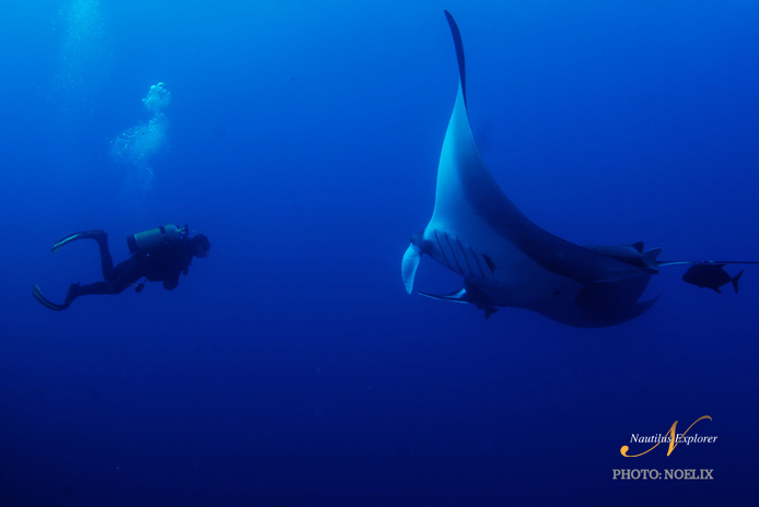 Well, I’ve been reading about Roca Partida for over a year now, since I booked this trip, and this morning we woke up to the two snowy peaks with the sunrise behind them. Surreal almost describes the atmosphere standing on the rail looking out. We came on this trip for two main reasons, giant Mantas and Hammerhead sharks. We’ve been dancing with the Mantas for 3 days now and today was Shark day. And Shark day it was! Sleeping Whitetips, cruising Silvertips and Galapagos, and schooling Hammerheads!.. oh, and just to add in a little spice, a young Whale Shark gave us a little drift-by checkout on the first morning dive! Joel and Juan (DMs) are great to dive with and will get you where you want to go… First Class crew seeing that everyone is taken care of. Another day at La Roca‚ then over to the Boiler to finish the cruise. Caio for now.