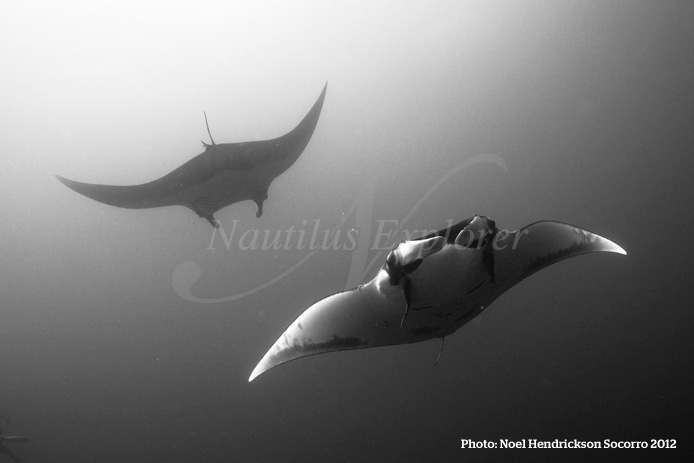 Um Mantas, diese phantastischen und majestaetisch dahingleitenden Tiere, hautnah, wieder und immer wieder erleben zu koennen , fuer den ist es ein Muss diesen entlegenen Top-Tauchplatz auf Socorro zu besuchen. Als Beigabe ziehen Weissspitzenhaie ihre Bahnen und als Dreingabe gibt es beim Auftauchen Begleitung von Delphinen.