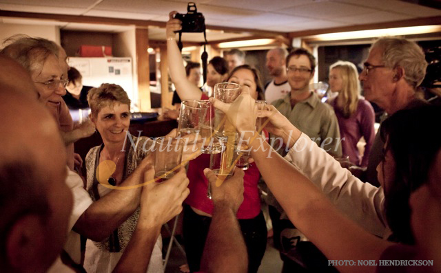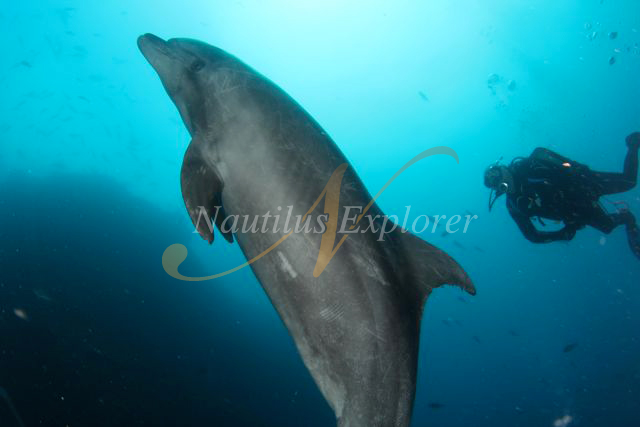 Well, thanks to our hurricane/tropical storm we finally arrived out here to St. Benedicto (We will say that the trip up the sea of Cortez was worth it to play with the sea lions, one of us got a good warning bark from one of the males). We did 4 dives today. The first dive of the morning somebody saw a fleeting dolphin that unfortunately never came back for the day, but the rest of that dive was pretty good. We got a good layout of The Boiler and saw a lot of green morays, lobster, and some very big octopus. The rest of the dives it was just mantas!! One dive, 3 mantas came and just played with us. They are beautiful creatures, very graceful. Every one of us got very up close and personal with the mantas as they swooped inches over our heads. One of them was mostly dark charcoal black and he got more and more friendly every dive. So the last 3 dives of the day we were accompanied by these beautiful creatures. The current was a little strong on the last dive but the side of the boiler provided us protection. We just at some chichcabob for dinner and now are getting ready for our days out at our next dive site. We are looking forward to more great experiences!!!