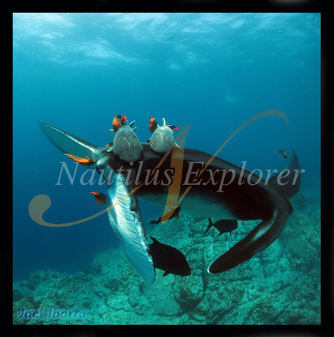 So far we had a wonderful day at the Boiler with the vis of 80 plus and the mantas just show their self off to all the divers through out the hole day we had them just waiting for us to get in i counted 5 at one time my neck was sore the next day cause of trying to see where the next manta would be coming from just a amazing dive day with the mantas so far we decided to head to Roca Partida AKA Snow Rock and Shark City just said it shark city we had the dive site for ourself as we were all excited to see what show was awaiting us as for lasst week we had a whale shark join us for the day but instead galapogos shark,silkys ,white tips, Hammerhead ,and silver tips with a school of tuna the are nearly the size of the white tips shark just rush into the school of skip jack and that is where the action starts with the dolphins trying to eat the tunas and the sharks just come in schools after the dolphin had there meat of the morning then the just came in a batch of about 6 to 8 together and got in between us and top and turn there belly to us as to say it is massage time just had us come close i would say 2 feet away from them just unbeatable moments on the last dive 3 of us saw a manta at Roca Partida and a Sailfish it was good ending now we head to see the mantas and put the icing on the cake anyway keep you all posted.