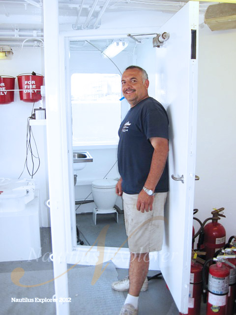 Big news this year on the Explorer was the addition of another head (restroom) on the dive deck. It may not seem like a big thing but something that our guests have been asking for and was overdue. It is a beautiful head if I don’t say so myself with a big window, lots of elbow room and glossy white paint and stainless steel.