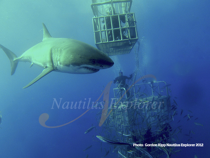 Is that a sea lion in the shark cage???? Nooooo that’s carmensita in her faaaashion blue poca-dotted wetsuit!! (Carmen is one of our hostesses on ship) Wellll, that was the last few days, enough about sharks, now we’s in san benitos, and its reaaaaal sea lions time, not the kind in fashion wetsuits!! Normally, I’d be upset at the sea lion’s name, cuz there’s not much lion to em‚ and I’m the type of guy that digs on lions, its possibly related to my name, tigre!!! But here there are lotsa of them false advertised atomic bombshells, and being a bombshell myself, I know how to set em‚ off at the end of the last dive, I thought to myself, what would jo do?? Swim out into the blue and see if there are any wandering predators around??? Yup, you got it, so I did it, but I didn’t find any wandering great whites as I had anticipated I was thinkin that with all these juicy delicious looking sea lions here, there must be some predator around that snacks on em‚ Guadalupe isn’t that