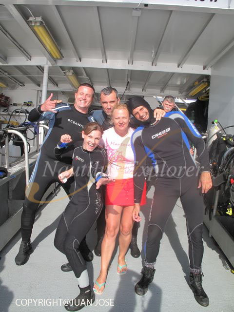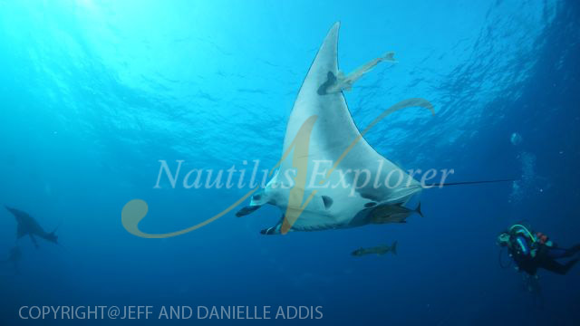 Last week was my first trip back for the 2012/2013 Socorro Islands season after a great 3 months of white shark diving at Isla Guadalupe. It’s one thing I love about working on the Nautilus Explorer, the variety of destinations we dive always keeps things interesting. Another thing I like about this boat is the variety of guests we get. There is always an interesting group onboard with lots of knowledge to share. Last week we had a full boat of 20 rebreather divers, as well as 5 open circuit divers. We’ve had rebreather divers onboard before but this was the first time, for me at least, with a full boat load. This presented us with some new challenges but I have to say the divemasters did a tremendous job and worked their butts off to keep everyone happy. This was definitely reflected in the feedback I got at the end of the trip, which included a couple comments from experienced liveaboard divers to the effect that this was the best liveaboard trip they had ever been on. Of course, the diving itself is always the key on a dive trip, and the diving here at the islands so far this season has been amazing! The rebreather divers last week took full advantage of their silent diving and enjoyed schooling hammerheads up close at both San Benedicto on day 1 and Roca Partida later in the trip. We had multiple giant mantas playing with us almost all day at Pta Tosca at Socorro, and had four giant mantas around Roca Partida on both days there. It’s been a couple years since we’ve had mantas at Roca Partida in any numbers so this is an encouraging start to this season! A few lucky divers also enjoyed an adult whale shark cruising by at Roca Partida.