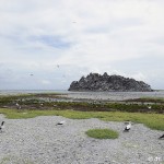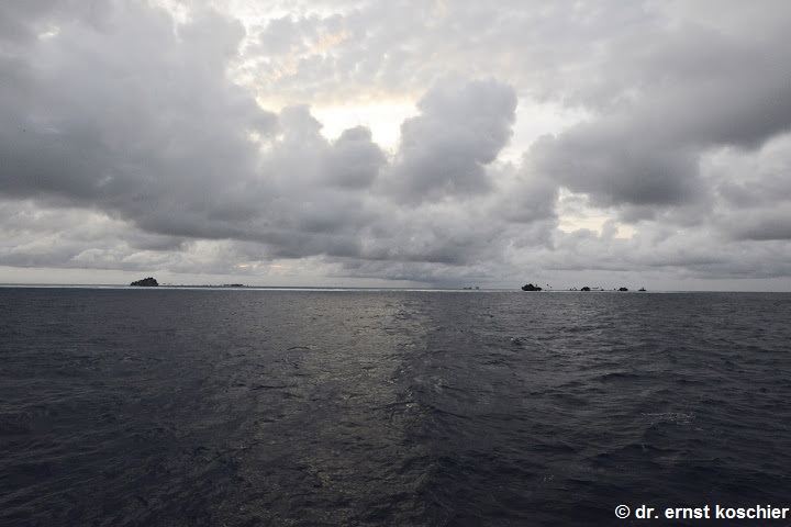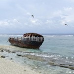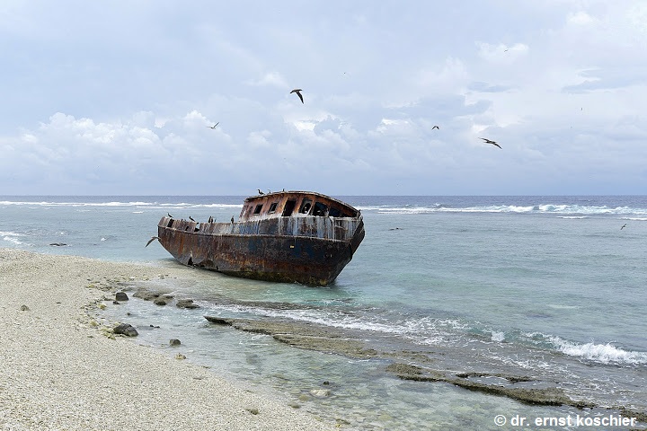 Today was our turn to land on the wave swept beaches of the historied island. With the barrier reef circling the island and the ever present swell breaking over this reef, getting ashore here is risky at best. It involves patience, timing and no small measure of cojones on everyones part, crew and guests alike. First we had to find the cut in the reef that would allow our inflatable through into the shallows on the inside of the reef. The second step is to standby outside the break line of the reef, with inflatable loaded and ready to go, watching the swell closely and waiting for those periods of relative calm between the big wave sets. When the big waves had passed through we would have a period of about 45 seconds to ride the back of a small swell in through the cut before the big waves would begin crashing behind us.