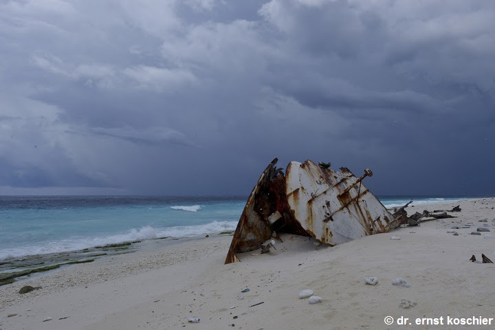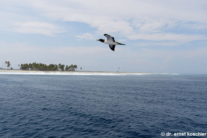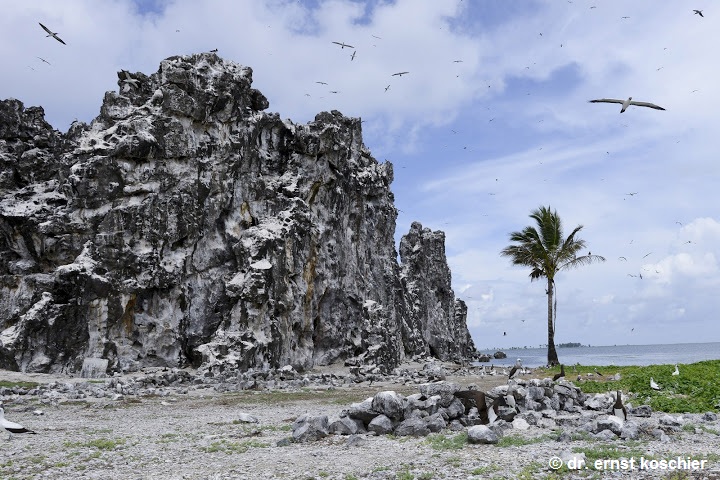 Today is our fourth day on location at Clipperton Atoll aka Isle of Passion. Its more romantic sounding name coming from the time when a Mexican navy sector was stationed on the island during the early 1900’s and then forgotten about when the Mexican revolution started. The navy personnel and their families, who had previously depended on navy resupply ships for their stores, were left to fend for themselves. This invariably led to disease and madness. As the story goes, the last surviving man on the island declared himself the King of Clipperton (a title that has been claimed many times since on the Explorers 5 visits here), and began to rape and murder the remaining women. The women eventually revolted and murdered the self proclaimed King before being rescued finally by an American navy vessel.