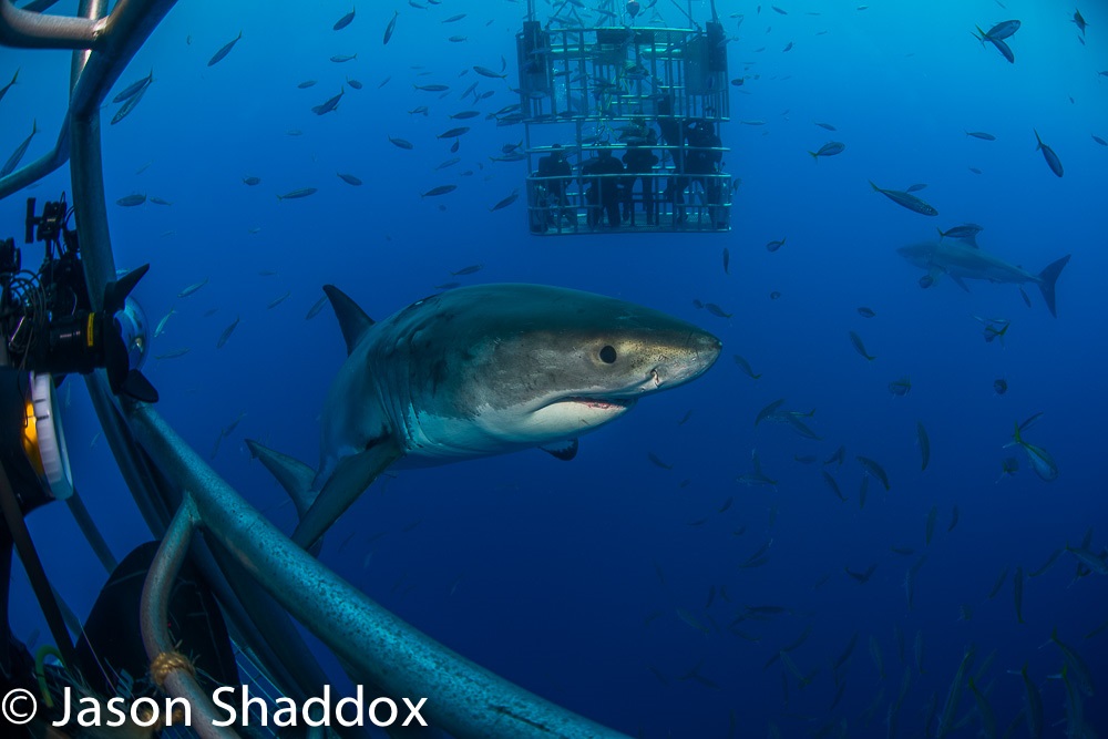 Another fantastic day at Guadalupe! I had the chance to get into the submersible cage this afternoon and the great white sharks were getting really “friendly.” We had 4-5 different sharks during the 45 minute dive. Mid dive there was one particular male shark that was chasing off the others and in a rather aggressive manor. We also had 3 sharks come shockingly close to the cage, enough to make the me jump back a bit! The surface activity was great today as well. A few different sea lions have been hunting around the boat, and one lucky guest actually got a great picture of a sea lion with a mackrel in its mouth. A large male sea lion joined us late afternoon and he has been very active on the surface. Days like today remind me how gretaful and lucky I am to be part of the Nautilus family!