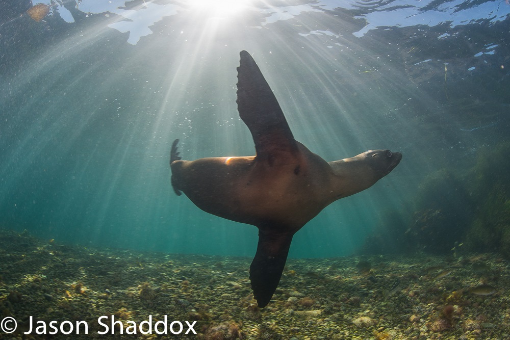 Sure that no seals would come close to me I started heading back to the skiff. Shaun pointed out a couple of seal pups that followed me. Diving down, there the playful pups invited me to a show of skills. Having no tank it was easy to take big strides and flips. They demonstrated their great actrobatic skills and were so encouraging…. can it be they were actually playing WITH me?? Another pup came from the distance an started to spin through the kelp closing distance between us until finally, we were just a fin length away. Eye to Eye . Smile to Smile. Communing with nature humbles you. It also lifts me to a level that inspires me to be a better human. We can and have to care for this planet we share with other life.