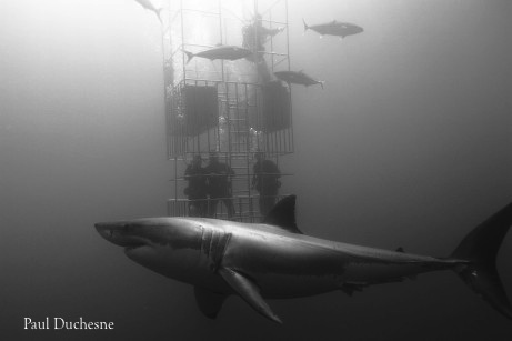 It’s good to finally be back in the submersible cages at Guadalupe Island. We Nautilus DM’s definitely have one of the more extreme jobs in the diving world. After all we are lowering our selves down to the oceans apex predator and its environment all while watching that everything with the cages is running smoothly, all limbs are staying behind the bars, and of course the backs of ourselves and the other DM’s across from us running the other cages just to be safe. Although that being said most divers are always surprised by the calm behaviour of the Great Whites as they curiously glide by. Unlike how they are mostly portrayed on TV and the movies these animals slowly make their way around us conserving energy while checking us bubble makers out of curiosity. Showing our guests this every trip out here is one of the perks of the job. The action out here on the Nautilus Belle Amie has been impressive to start 2015 off. Multiple males averaging between 12 and 14 feet in length have been showing up throughout the last couple days. The largest of the bunch (believed to be named Cici) has been showing his smile reallllll close for the divers. With our 3 new submersibles on the Belle Amie, plenty of good shots have come from them.