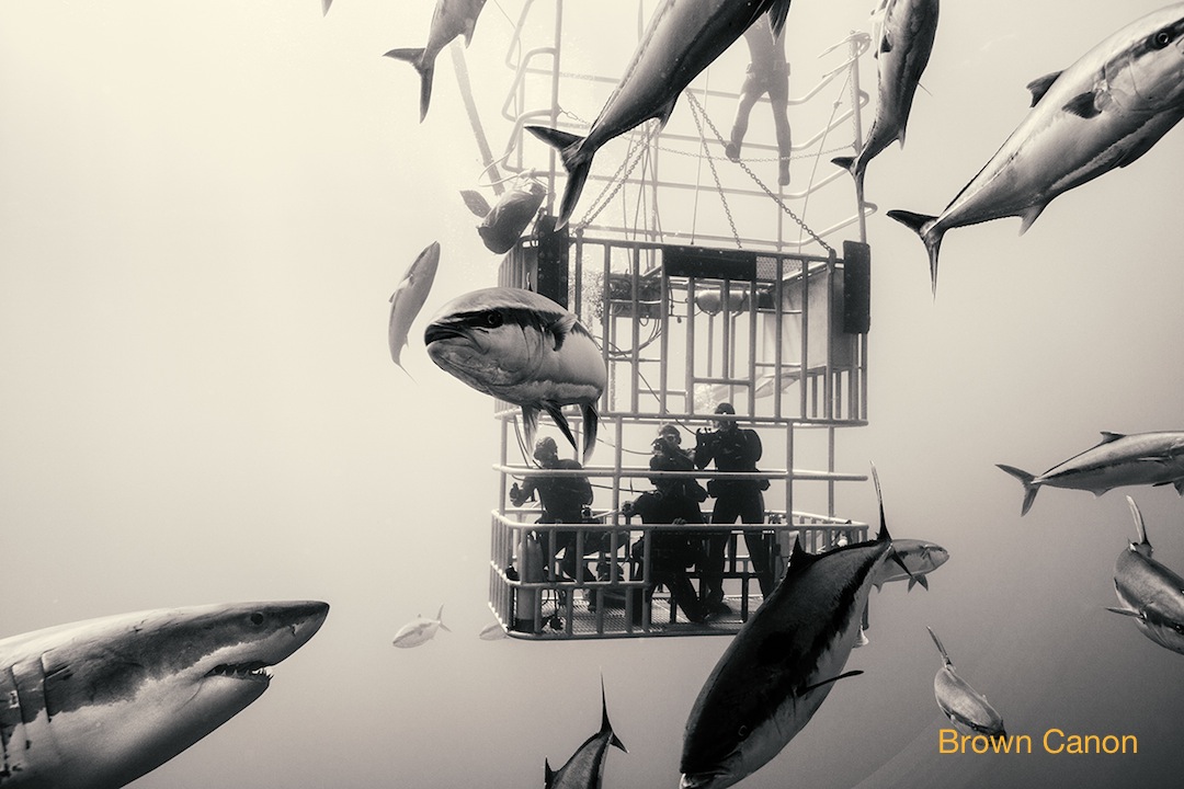 I defy any Human Being who has a love for the natural world and fish, mammals and animals of all kinds to NOT be blown away by this experience… I am constantly horrifed by the way Ignorant media reports have classified Great Whites in particular and Sharks in general as cold-blooded killers… Nothing could be further from the truth… They are extremely cautious and methodical in their approaches and movements… The interaction amongst the sharks themselves is a hierarchial ballet… The bigger the shark, the more room or repesct he/she is given by the others.