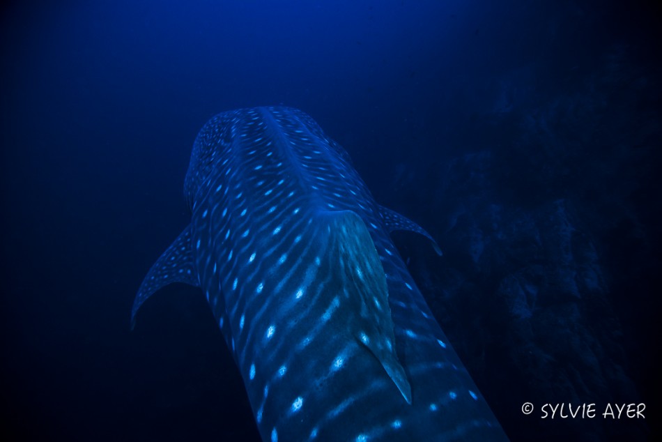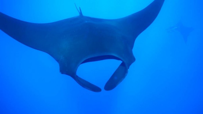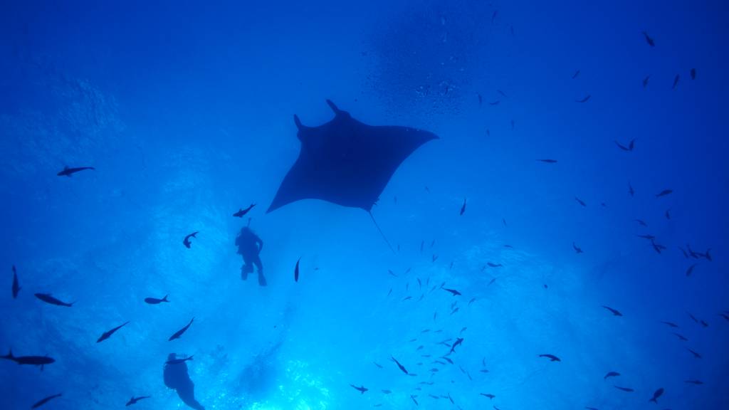 This morning at the Boiler I splashed in with my group of 9 divers and was instantly met by 3 Chevron mantas and 1 Black manta. We were soon joined by a small pod of 6 dolphins we made a quick pass by going off the north point out into the blue. Always an awesome sight and good way to start the day, but it turned out to be a big and aggressive fish that I’ll remember this one for. Looking down at 4 divers below me the schools of Razor Surgeonfish and Redtail trigger fish that were in the area quickly darted off. In came a massive yellowfin tuna, easily between 200-250 pounds. Swimming directly at the group of divers my self and them expected him to change course. Instead he went right at them passing with in a few feet. Apparently scaring a couple who thought it was a shark at first due to its size. Impressive seeing a fish on its own come at a group of divers so confidently.