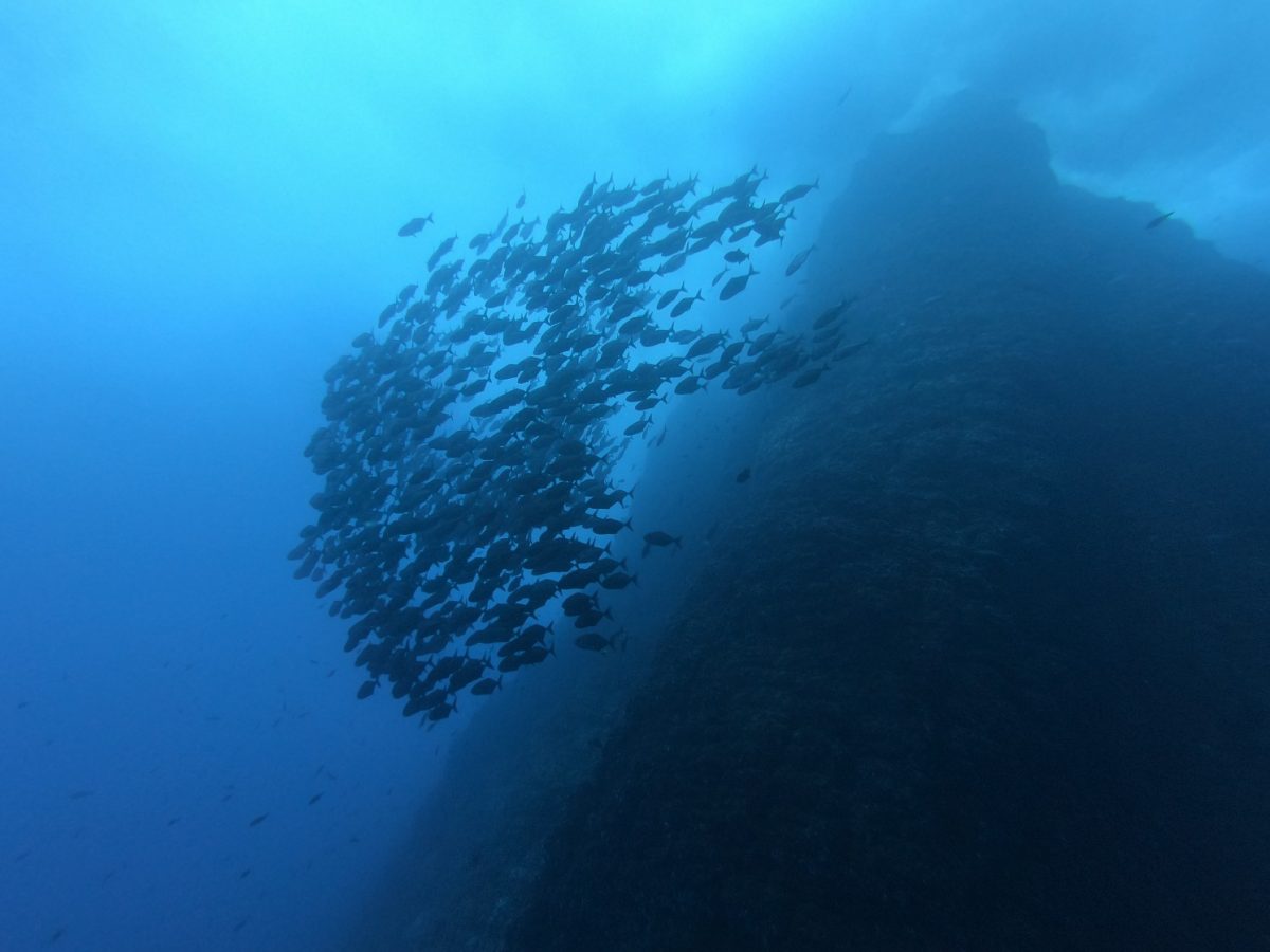 Cruising around the rock, we found ourselves engulfed in humongous schools of cottonmouth jacks, stared down by passing black trevally, and blown away by gargantuan yellowfin tuna. White tip reef sharks patrolled along the walls while groups of large Galapagos sharks circled deeper.