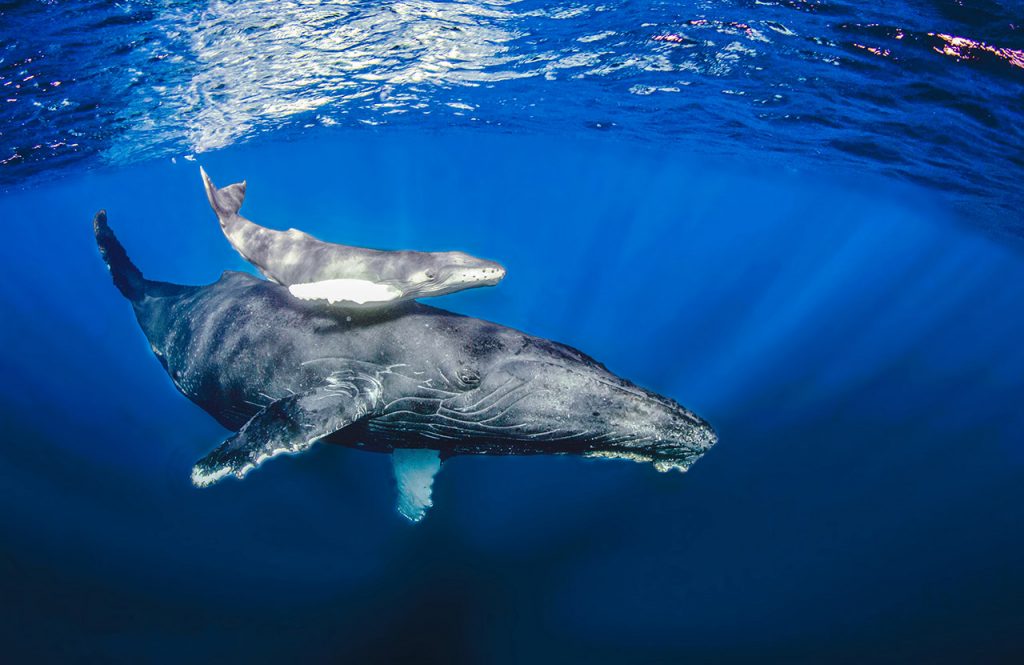 For the past several decades, we’ve been fortunate enough to see some really spectacular behaviour; 40-ton male humpbacks will compete for dominance and sometimes literally smash into each other or rake their competitors with their barnacle-encrusted pectoral fins, leaving a trail of blood in the water. It’s spectacular behaviour to observe although somewhat rare. While we cannot intentionally dive with them, if the stars align, you might be lucky enough to be approached by a mama and calf while you are in the water, as shown in this video taken by our dive master ‘Vikingo’ on one of our trips.