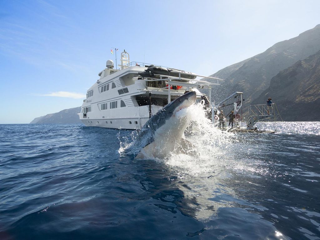 Guadalupe has all the right ingredients for the perfect photo, stunning subjects with beautiful, topaz blue water and visibility up to 150 ft (45m). We anchor in a calm, protected bay (no seasickness here!), and with such still water, it’s like looking through a glass window to the action. Insider tip: keep your camera on hand when on deck and follow the sharks’ movements below as they shoot up through the water and breach.