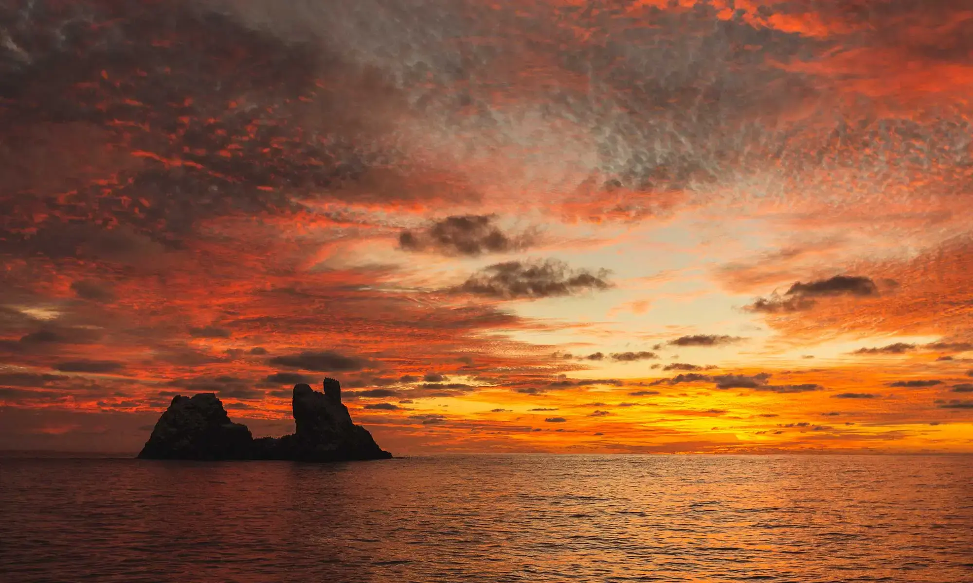 Traveling and relaxing at sea. It’s a one day run out to the socorro islands. Cocktail hour. Sunsets. Arrive at San Benedicto Island by evening.