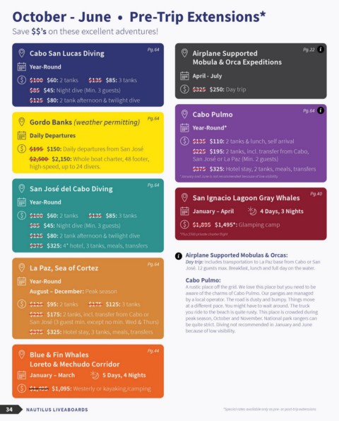 34 NAUTILUS LIVEABOARDS *Special rates available only as pre- or post-trip extensions