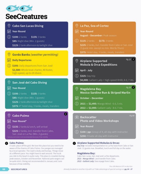 66 SEECREATURES Already booked on another trip with us? Take advantage of special savings on pg.34 - 37
