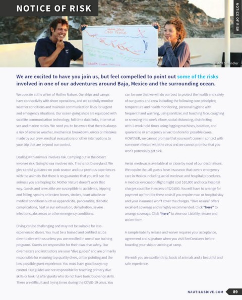 involves risk. Going to sea involves risk. This is not Disneyland. We Aerial medevac is available at or close by most of our destinations.