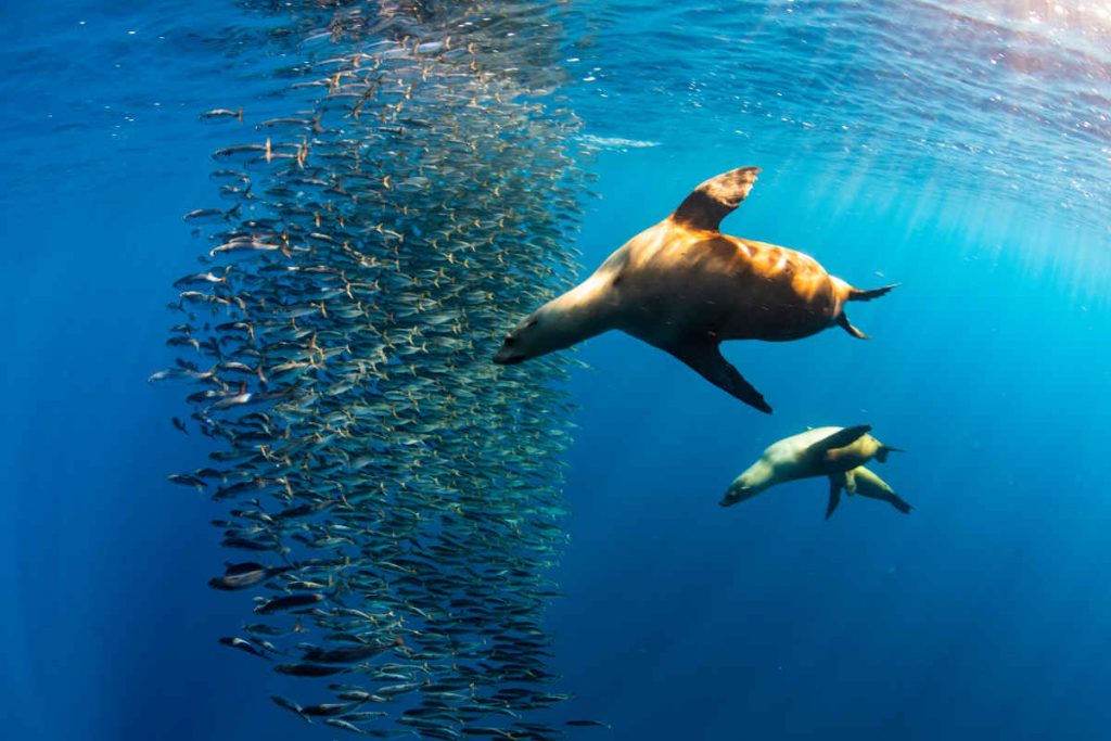 During Mid-October to December, a magical event happens in the nutrient rich swirling blue waters off Magdalena Bay where All sorts of predators gather to hunt on the second largest sardine run in the world. This thrilling underwater action is spectacular.