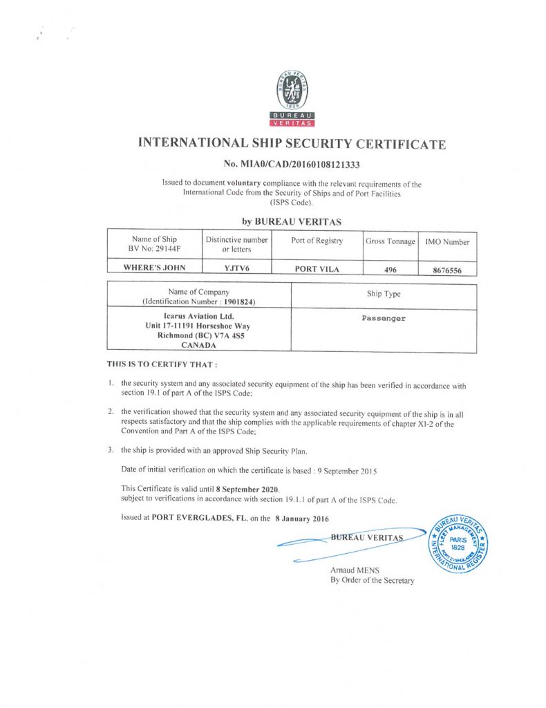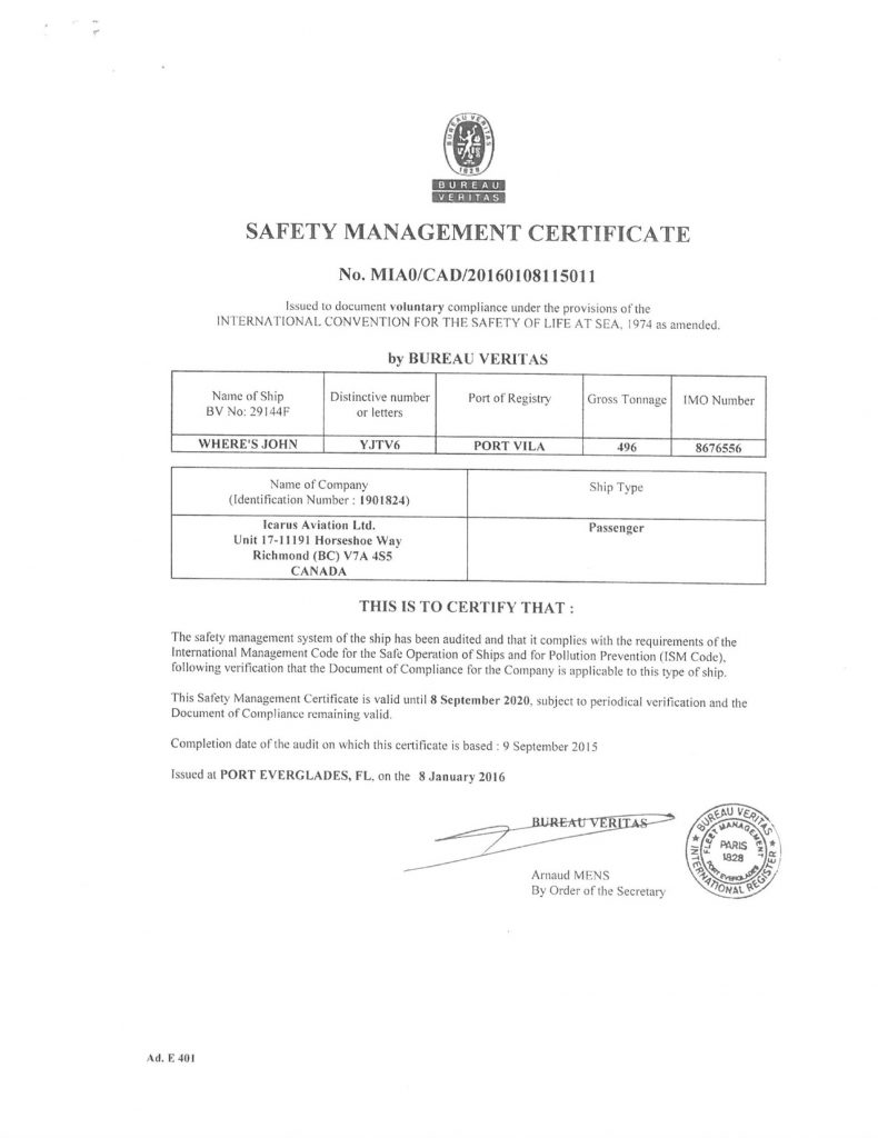 By Nautilus Staff on March 20th, 2018 in Nautilus Belle Amie Certificates Document of Compliance International Ship Security Certificate Passenger Ship Safety Certificate Safety Management Certificate Ship Radio Station License Overseas Marine Certification Services