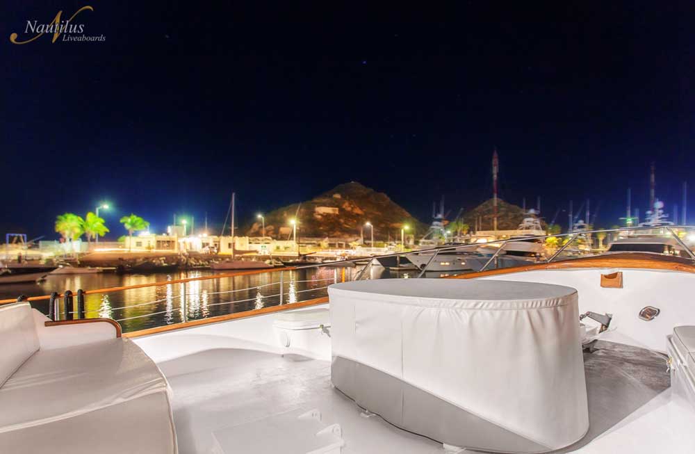 Hot tub to warm up between or after dives, with drinks and snack service.