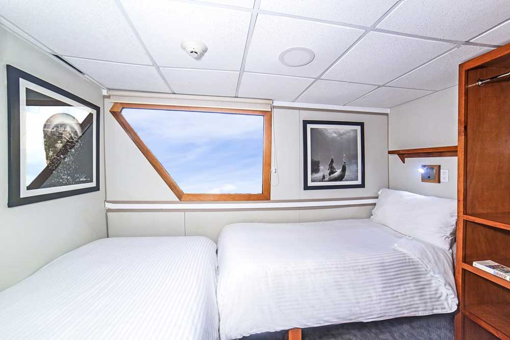 Adjacent to the dive deck. Wheelchair friendly. Twin beds. Huge window! Ensuite with private shower and individually-controlled air conditioning (Rosario).
