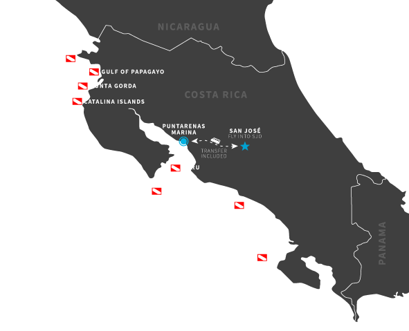 Expeditions from 2024 and on departs from Golfito in the heart of the tropical rainforest, surrounded by numerous excellent hotels and resorts. We recommend either a quick 45-minute connecting flight from SJO with Sansa Airlines or a very interesting 6-hour drive from either San Jose or Panama City, Panama.