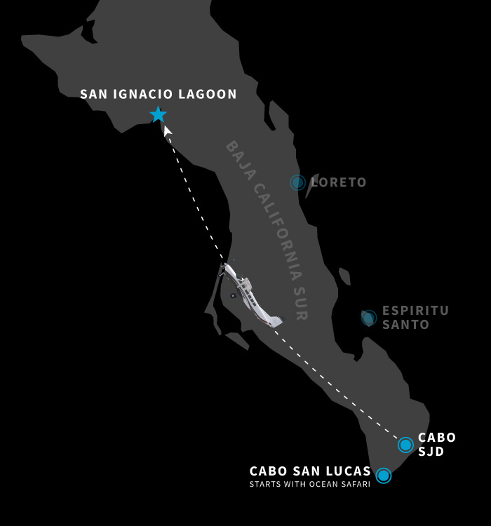 We recommend SJD Cabo San Lucas as your gateway airport with transfers to local hotels in Los Cabos, the jumping off point for additional pre-trip adventure and relaxation before flying out to San Ignacio Lagoon. Our concierge team is on standby to assist with arrangements, special requests, and answer any questions you may have.
