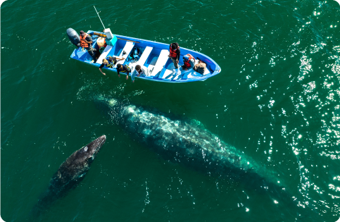 Laguna San Ignacio is a UNESCO World Heritage Site and protected whale sanctuary. We adhere to strict guidelines that ensure non-intrusive, ethical whale watching in their natural habitat. Our tours take place in a designated whale-watching zone, with a limited number of boats allowed at any time to maintain a respectful distance. Outside of this area, interacting with the whales is illegal. We never chase, feed, or coerce the whales into approaching.