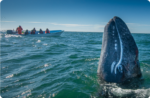 Sightings vary throughout the season. The first gray whales to arrive are usually adults coming to mate. As the season progresses, more whales fill the lagoon, and by early February, the first newborn calves begin to appear. Soon, the lagoon is bustling with mothers and babies, busy training for their long journey north. Towards the end of the season, the calves often become especially friendly.